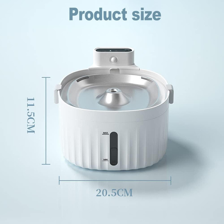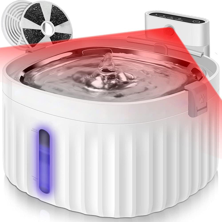 حالت سنسور IR خودکار + حالت عادی (جریان ثابت): حالت خودکار: با ورود حیوان خانگی شما به ناحیه حسگر، نور آبی فانتزی روشن می شود و آب خارج می شود (زاویه سنجش: 120 درجه | فاصله حس: 1.2 متر)، و وقتی خاموش می شود برگ های حیوان خانگی سنسور اضافه شده به صرفه جویی در مصرف برق و افزایش طول عمر آبنما کمک می کند، به ویژه باعث می شود باتری پشتیبان در هنگام قطع شدن برق، به طور خودکار به منبع تغذیه باتری تبدیل شود.