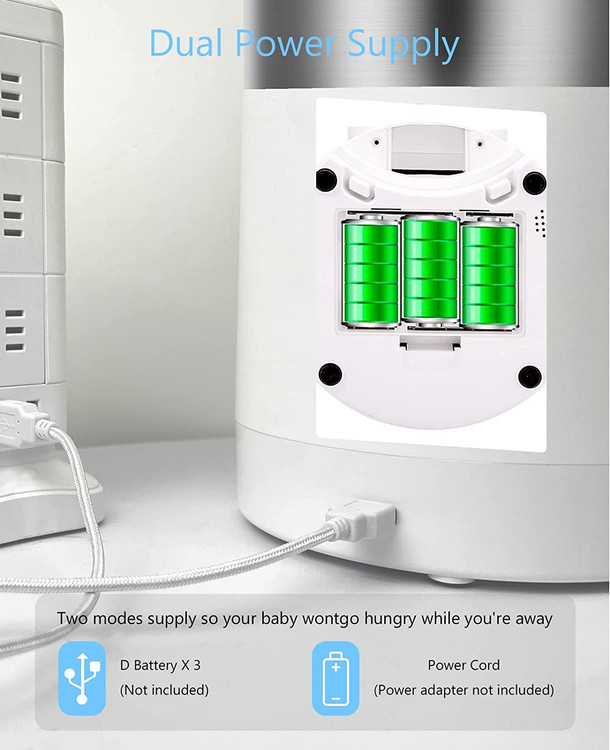 منبع تغذیه دوگانه: سطح غذا را می توان به راحتی از طریق پنجره شفاف کنترل کرد و غذا را می توان به موقع دوباره پر کرد. علاوه بر آداپتور USB-C، تغذیه خودکار میتواند از 3 باتری قلیایی D (که شامل نمیشود) بهعنوان منبع تغذیه پشتیبان استفاده کند و اطمینان حاصل کند که حتی در صورت قطع برق کار میکند و هنگام تغذیه خیالتان راحت میشود.