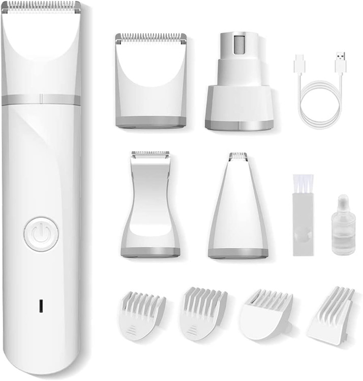 کیت آرایش موبر برقی حیوانات خانگی با 4 سر، ریش تراش قابل شارژ، ناخن گیر برای پنجه، چشم، گوش، صورت مو گیر سگ،