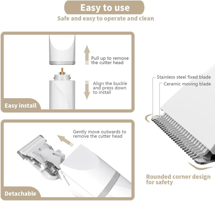 لرزش کم و طراحی فوق العاده بی صدا. صدا در هنگام کار فقط حدود 50 دسی بل است تا به حیوان خانگی کمک کند احساس راحتی کند و دیگر از کوتاه کردن موها نترسد.