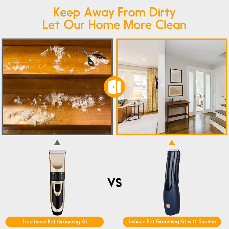 【جاروبرقی برای نظافت】 کیت سنتی نظافت حیوانات خانگی می تواند باعث ایجاد مو و سردرگمی زیادی در خانه شود و می تواند روز ما را وحشتناک کند. با این حال، موبر سگ Joincee ما برای نظافت دارای عملکرد مکیدن مو با خلاء است، با تیغه های سرامیکی پیچیده که می تواند به سرعت از بین موها عبور کند، در حالی که آنها را کوتاه می کند. این می تواند تا 99 درصد از موهای حیوان خانگی را در ظروف جمع کند، این می تواند خانه شما را تمیز نگه دارد و حیوان خانگی شما بدون گره خوردن خواهد بود.