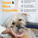 قیچی موی حیوان خانگی خلاء دارای طراحی کم صدا برای قیچی ملایم است و تجربه اصلاح با کیفیتی را برای خود و حیوان خانگی شما به ارمغان می آورد.