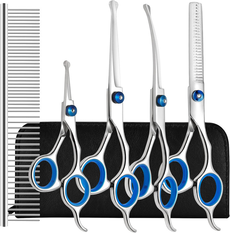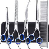 【ست قیچی نظافت 6 در 1 سگ】 مجموعه قیچی نظافت سگ دارای 2 قیچی مستقیم، 1 قیچی نازک کننده، 1 قیچی منحنی، 1 شانه نظافت و 1 کیف نگهداری می باشد.