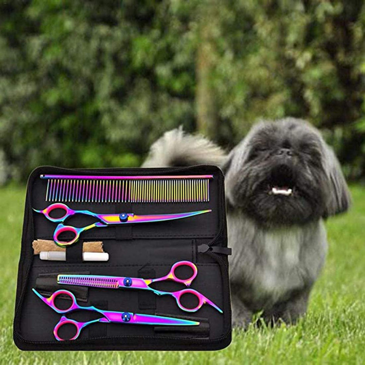 ست قیچی 7 رنگارنگ آرایش و اصلاح موی حیوانات خانگی برند: ELECDON کد : N 140