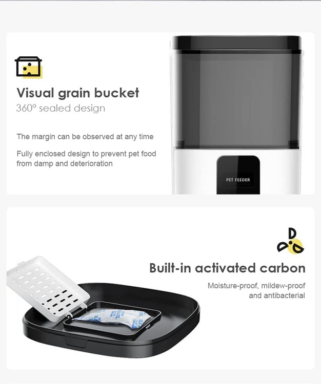 غذاخوری اتوماتیک با قابلیت wi-fi به شما این امکان را میدهد تا زمان و مقدار غذای حیوان خانگی خود را از راه دور تغییر دهید. برای دسترسی به به برنامه تلفن خود فقط باید به wi-fi خود متصل باشید.