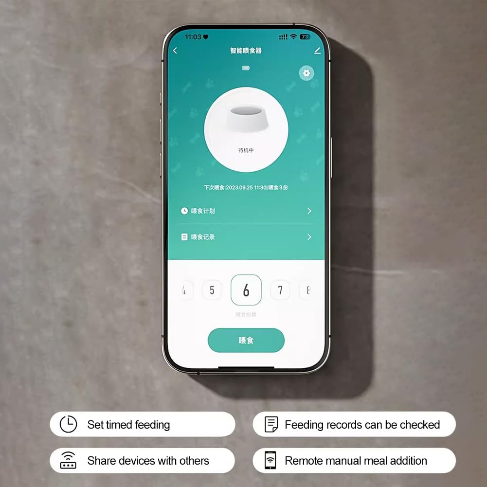 غذاخوری اتوماتیک با قابلیت wi-fi به شما این امکان را میدهد تا زمان و مقدار غذای حیوان خانگی خود را از راه دور تغییر دهید. برای دسترسی به به برنامه تلفن خود فقط باید به wi-fi خود متصل باشید.