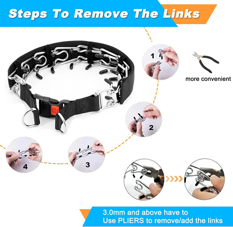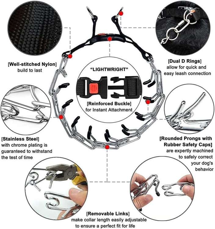 قلاده پرانگ آموزشی سگ Arabest، پیوندهای فولادی ضد زنگ قابل تنظیم بدون قلاده سگ با سرهای لاستیکی راحت و سگک تاکتیکی فلزی سریع آزادسازی، برای سگ های کوچک و متوسط بزرگ
