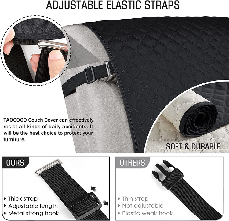 بدون لغزش: در جای خود بمانید! 1. طرح کلوئیدی گرد جامد در پشت روکش صندلی ما. 2. تسمه های الاستیک انعطاف پذیر اضافی و نوارهای فوم، به طوری که می تواند پوشش مبل تکیه ما را روی قسمت نشیمن ثابت نگه دارد، حتی روی مبلمان چرمی. روکش صندلی در هر صندلی ثابت تر است.)