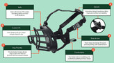 تسمه ایمنی با طراحی ارگونومیک ایمن و ایمن تضمین می کند که پوزه به طور ایمن در جای خود باقی می ماند و دارای دو نقطه اتصال با استفاده از یک حلقه اتصال است که برای اتصال به قلاده معمولی سگ شما و یک بند ایمنی انتخابی و قابل جابجایی بالای سر سگ شما طراحی شده است.