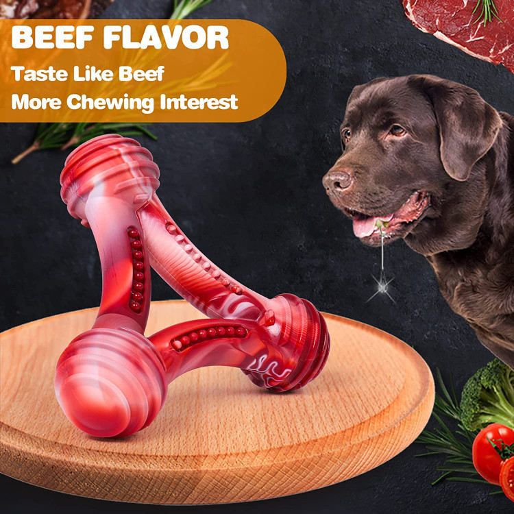 اسباببازیهای جویدنی سگ SKADE برای جویدنهای تهاجمی، اسباببازیهای سگهای سخت غیرقابل تخریب با طعم گوشت گاو، اسباببازیهای نایلونی بادوام برای جویدن سگ برای سگهای نژاد بزرگ/متوسط