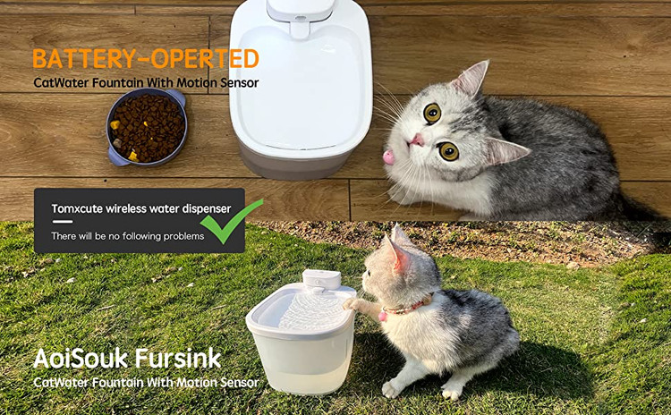 🐈پمپ بیسیم بیصدا: فوارههای آبخوری مجهز به پمپ آب بیسیم برای ایمنتر کردن نوشیدن حیوانات خانگی از همیشه هستند، که حذف آن از مشکل اتصال سیمها جلوگیری میکند. می توانید آبنمای بی سیم گربه را در هر مکانی که گربه شما دوست دارد قرار دهید تا گربه شما را به نوشیدن آب بیشتر تشویق کند، حتی اگر برق نباشد.