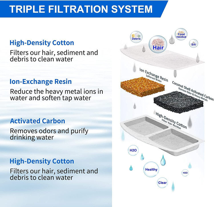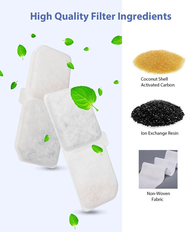 ✿【کیفیت ممتاز】هر فیلتر آبنمای حیوانات خانگی از کربن فعال، رزین تبادل یونی و پارچه نبافته تشکیل شده است. آنها می توانند مو، فلزات سنگین را فیلتر کنند و طعم آب را بهبود بخشند تا حیوانات خانگی بتوانند آب تمیز و تازه بنوشند.