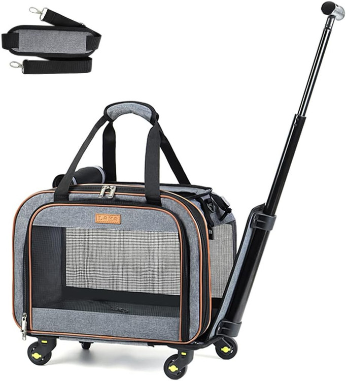 تایید شده توسط شرکت هواپیمایی، حامل حیوان خانگی چرخدار با دسته پیاده روی تلسکوپی، خاکستری