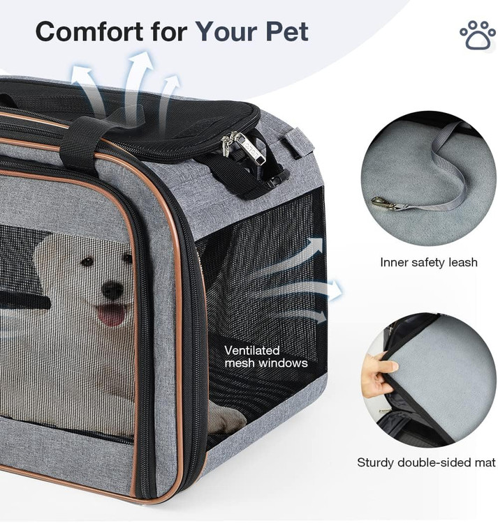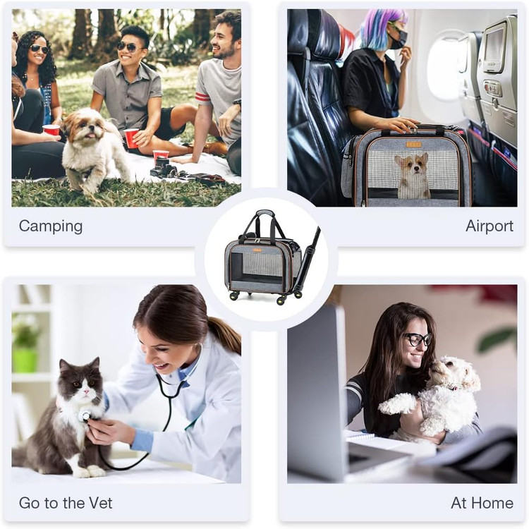 مورد تایید خط هوایی و جادار: ابعاد 20.5''Lx11.8''Wx12.6 اینچ (بدون چرخ)، این کالسکه حیوان خانگی برای مطابقت با استانداردهای TSA طراحی شده است و در زیر صندلیهای هواپیما وقتی چرخها برداشته میشوند، مناسب است. مناسب برای کوچک/متوسط حیوانات خانگی تا وزن 20 پوند (9 کیلوگرم).