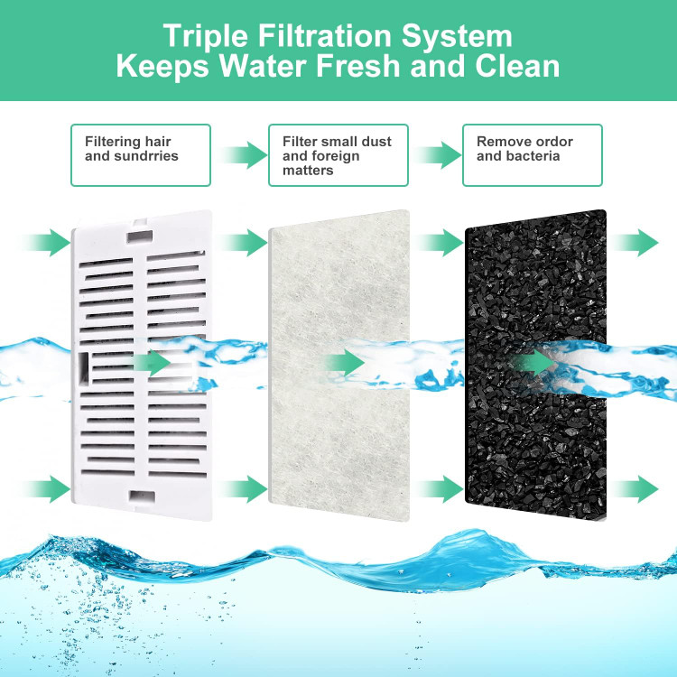 سلامت و ایمنی: ساخته شده از مواد سازگار با محیط زیست و غیر سمی، فیلترها به اطمینان از کیفیت آب و ارائه آب سالم و خالص برای محافظت از سلامت حیوان خانگی شما کمک می کنند.