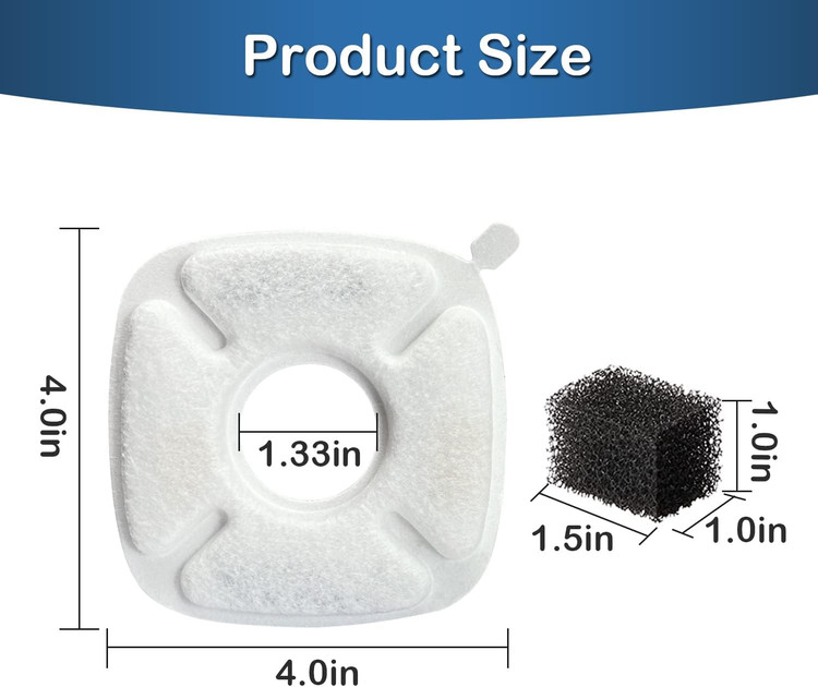 [اندازه] فیلتر فواره گربه: طول حدود 4 اینچ است. عرض حدود 4 اینچ است. ضخامت حدود 0.5 اینچ است. اسپانس پیش فیلتر: طول: 1.5 اینچ. عرض: 1 اینچ ارتفاع: 1 اینچ.