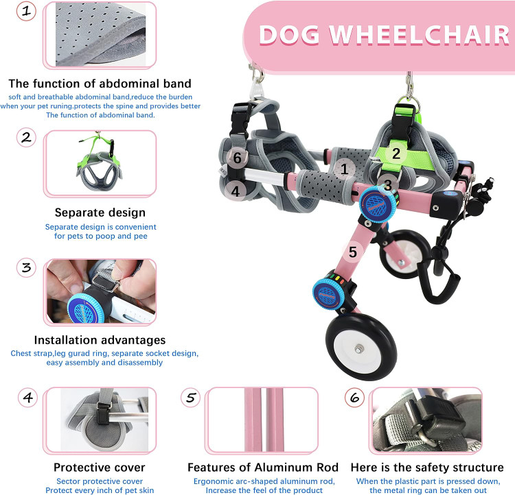 [طراحی دلگرم کننده]: حیوانات خانگی با حرکات نامناسب در زندگی دچار مشکل می شوند. ناتوانی طولانی مدت در ورزش روی حیوان خانگی تأثیر می گذارد و اعتماد به نفس او را کاهش می دهد. ویلچر حیوان خانگی ما برای کمک به حیوانات خانگی با پاهای عقب آسیب دیده یا ناتوان در راه رفتن، دویدن و بازی آزادانه طراحی شده است و به آنها کمک می کند تا به زندگی عادی بازگردند.