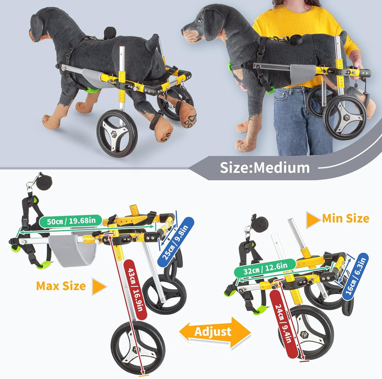 ویلچر سگ خانگی متوسط، ویلچر Anmas Box Dog، ویلچر مهار حرکتی سگ، ویلچر سگ قابل تنظیم دو چرخ برای توانبخشی پاهای عقب (زرد)