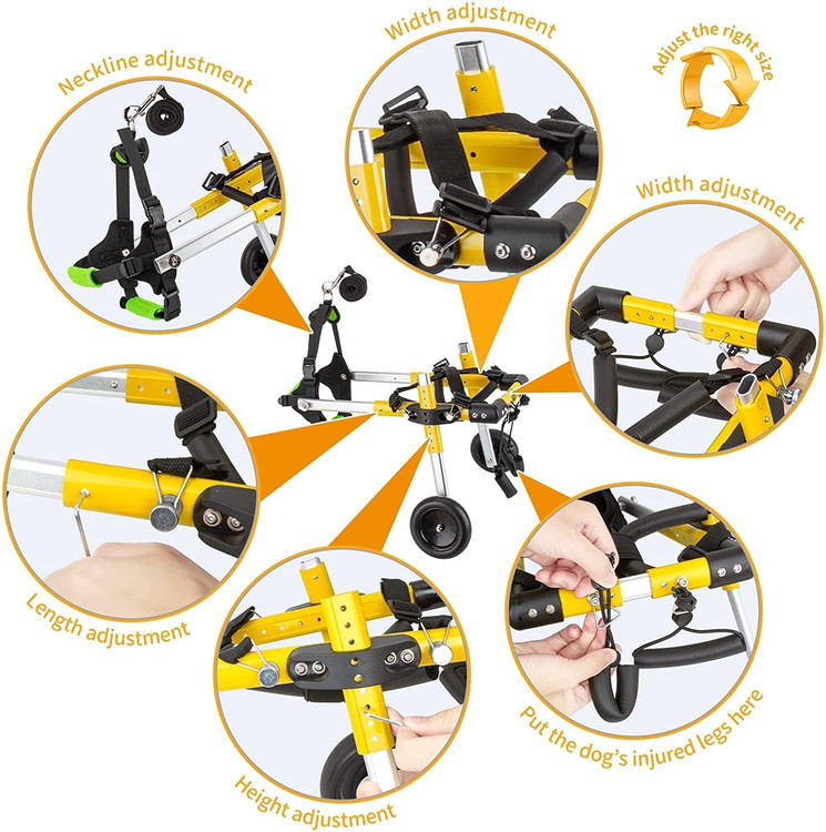ارتفاع/عرض و طول ویلچر حیوان خانگی همگی قابل تنظیم هستند، می تواند در حد محدودی برای حیوان خانگی شما مناسب باشد. با بند سگ همراه باشید که میتوانید هنگام پیادهروی از آن استفاده کنید.
