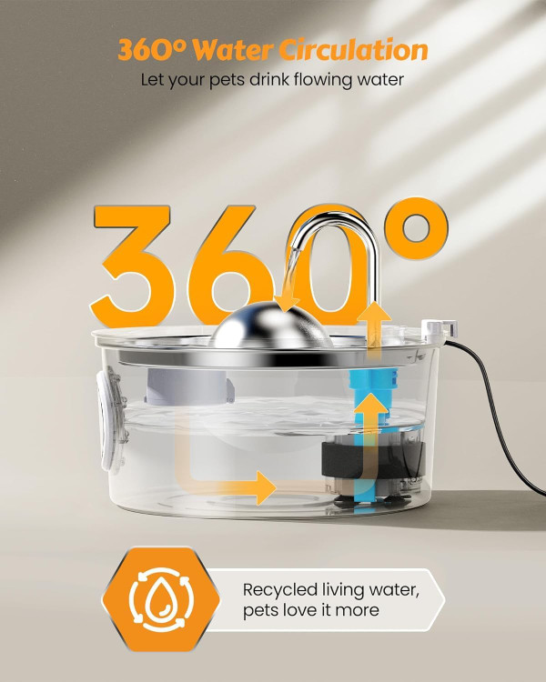 🔋🐱نوشیدن حیوانات خانگی را بیشتر تشویق کنید: جریان آب پویا به جذب حیوانات خانگی برای نوشیدن کمک می کند. نصب یا جدا کردن آبنما فقط 1 دقیقه طول می کشد، و لطفاً هر هفته کاسه را تمیز کنید و پمپاژ کنید. و از طریق افزایش هیدراتاسیون به پیشگیری از بیماری های ادراری و کلیوی در حیوانات خانگی کمک می کند. جریان های چند جهته 360 درجه، آب را برای اکسیژن و طراوت بیشتر هوادهی می کنند. .