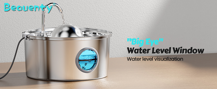 آبخوری گربه ، فواره فولاد ضد زنگ ، آبنمای سگ و گربه با پنجره سطح آب ، شکل نیمکره برند: Beauenty کد : F 136