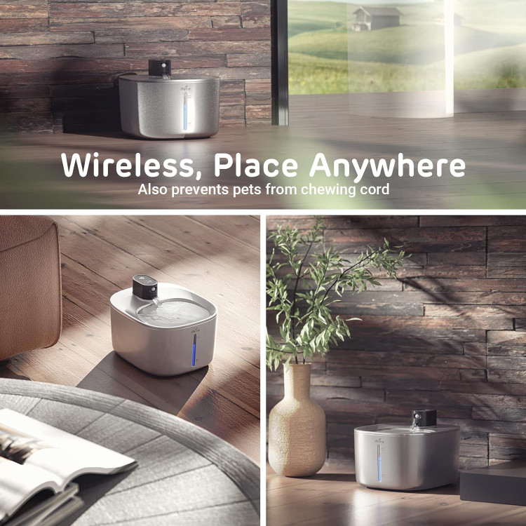 [طراحی با باتری بی سیم] طراحی فواره آب بی سیم به گربه های شما اجازه می دهد آزادانه از آب شیرین در هر کجا لذت ببرند. از آنجایی که گربهها عاشق دویدن تصادفی از اتاقی به اتاق دیگر هستند، آبنما نباید در مکانی ثابت نصب شود. سیمهای خارجی برای جلوگیری از جویدن آنها توسط بچهها حذف شدند.