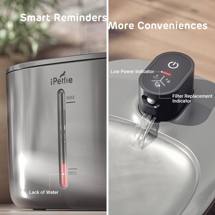 [304 Stainless Steel & Multi-filter System] ساخته شده از فولاد ضد زنگ بادوام و با کیفیت بالا، که برای نوشیدنی حیوانات خانگی ایمن و بهداشتی است، از دوستان پشمالوی شما در برابر آکنه گربه محافظت می کند، همچنین تمیز کردن و نگهداری آن را آسان می کند. فواره آشامیدنی آب خالص را با سیستم فیلتراسیون گردشی 4 لایه حفظ می کند و اطمینان می دهد که هر جرعه تازه و تمیز است.
