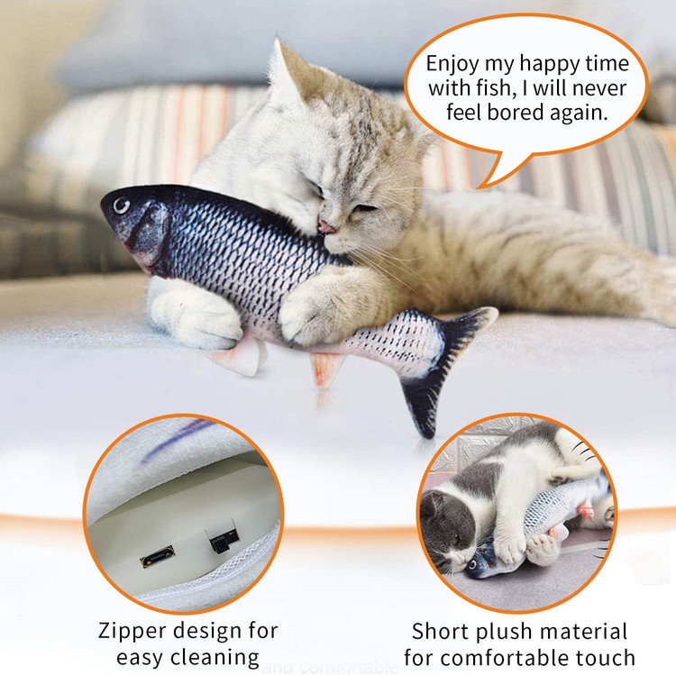 USB Chargeable - باتری لیتیومی قابل شارژ باعث صرفه جویی در دردسر و هزینه تعویض باتری ها می شود. تعامل هوشمند - وقتی گربه شما ماهی را لمس می کند، شروع به تکان دادن می کند تا علاقه او را برانگیزد. آماده به کار هوشمند - وقتی بچه گربه شما با i بازی نمی کند، ماهی در جای خود می ماند.