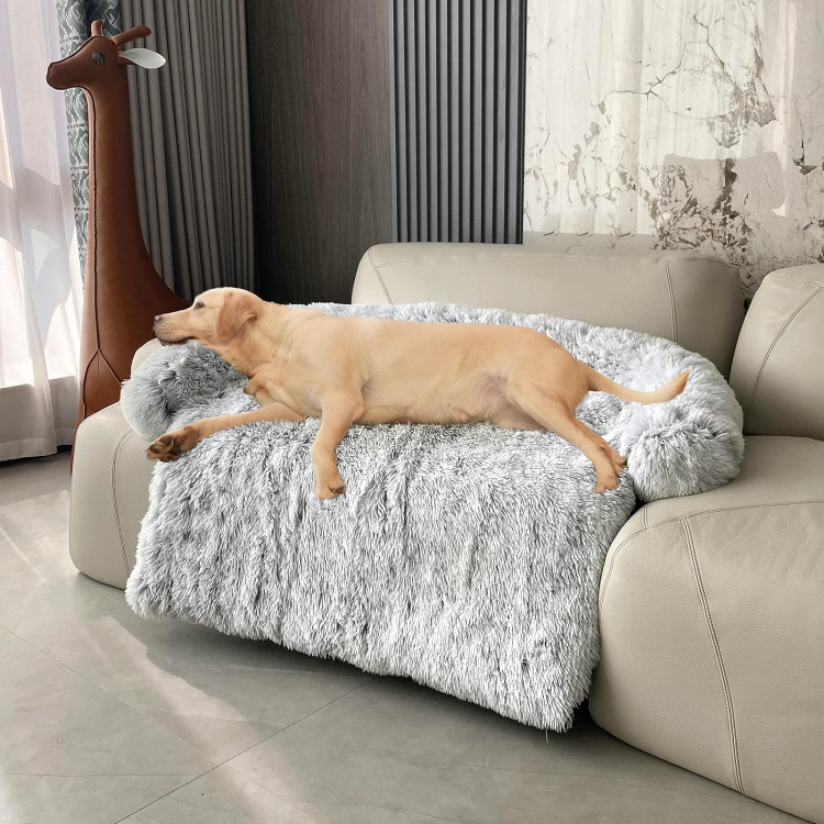 طراحی منحنی منحصربهفرد به حیوانات خانگی فضایی گرم و ایمن برای جمع شدن میدهد. به خوبی میتواند از مبلمان در برابر مو و ادرار محافظت کند و از آسیب دیدن مبل جلوگیری کند. روکش مبل سگها با مخمل نرم گرم و راحت است. پایین پتو سگ ضخیم شده است تا سگ شما را از کف سرد دور نگه دارد. لبه های برآمده می توانند سر و گردن حیوان خانگی شما را پشتیبانی کنند و درد عضلانی را کاهش دهند.