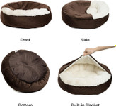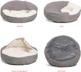 تخت خواب لوکس سگ و گربه با پتوی کلاهدار برای گرما و امنیت - قابل شستشو در ماشین، پایه مقاوم در برابر آب/خاک - خاکستری استاندارد، جامبو (CZC-MSN-GRY-2626)