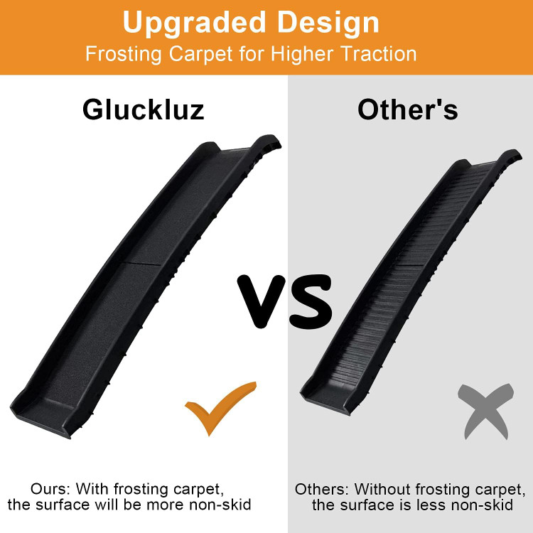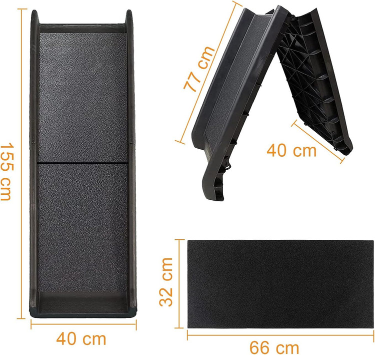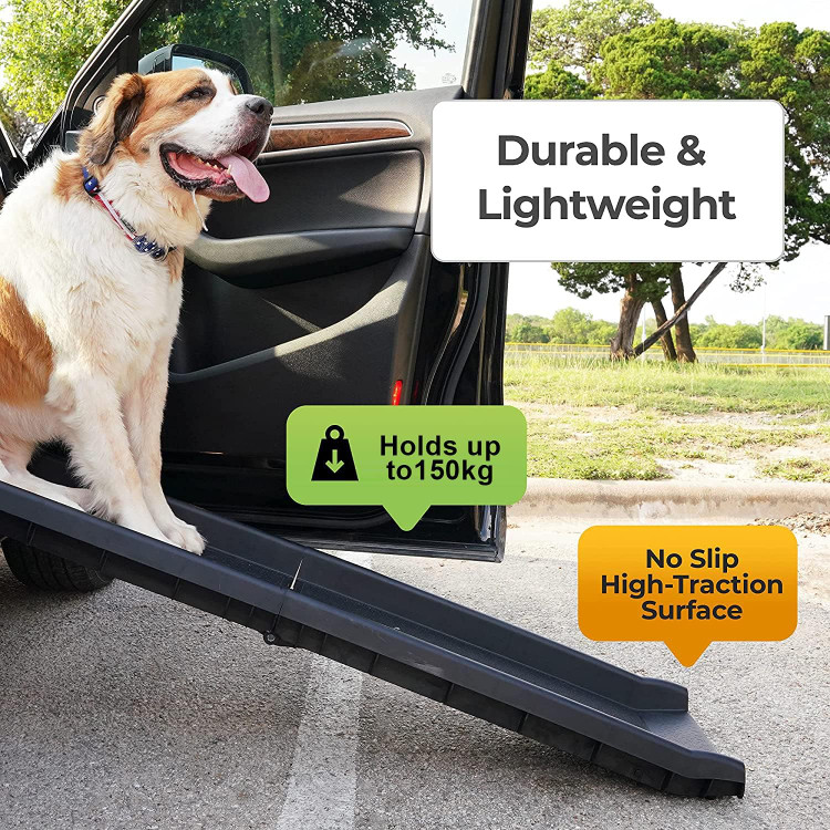 رمپ سگ آج فرش کشش را فراهم می کند: سطح شیب دار اتومبیل که با فرش پوشانده شده است، کشش و سطحی بدون لغزش برای پنجه ها هنگامی که حیوان خانگی شما بالا و پایین راه می رود، فراهم می کند. این به جلوگیری از لغزش کمک می کند و ایمنی بیشتری را برای سگ های مسن فراهم می کند.