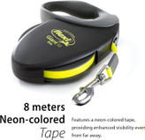 بند جمع شونده فلکسی سگ غول پیکر حرفه ای 10 متر مشکی/زرد نئون