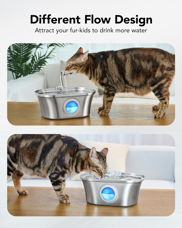 🐱【مواد فولادی ضد زنگ 304】با فواره آب گربه استیل ضد زنگ با دوام و تمیز کردن آسان، حیوان خانگی خود را هیدراته نگه دارید! ساخته شده از فولاد ضد زنگ 304 با کیفیت بالا، این آب پخش کننده حیوان خانگی قابل شستشو در ماشین ظرفشویی است و تجربه نوشیدن ایمن و تمیز را برای دوست پشمالوی شما تضمین می کند.