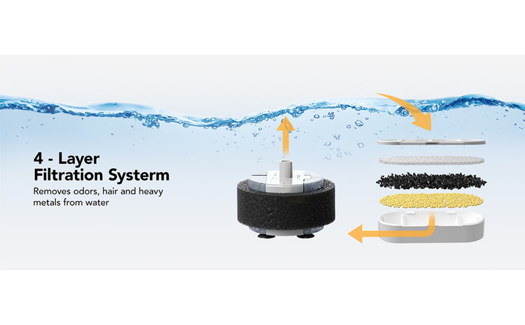 🐱【سیستم فیلتر چهارگانه】 مجهز به فیلتر و اسفنج پیش فیلتر، کاسه آب فواره گربه ما به طور موثر مو، زباله، بو و ناخالصی ها را از آب پاک می کند. این سیستم چند فیلتراسیون تضمین می کند که حیوان خانگی شما آب جاری را تصفیه می کند و سلامت و رفاه کلی آنها را ارتقا می دهد.