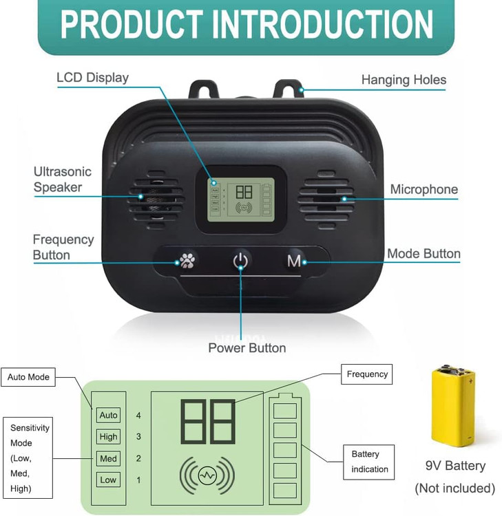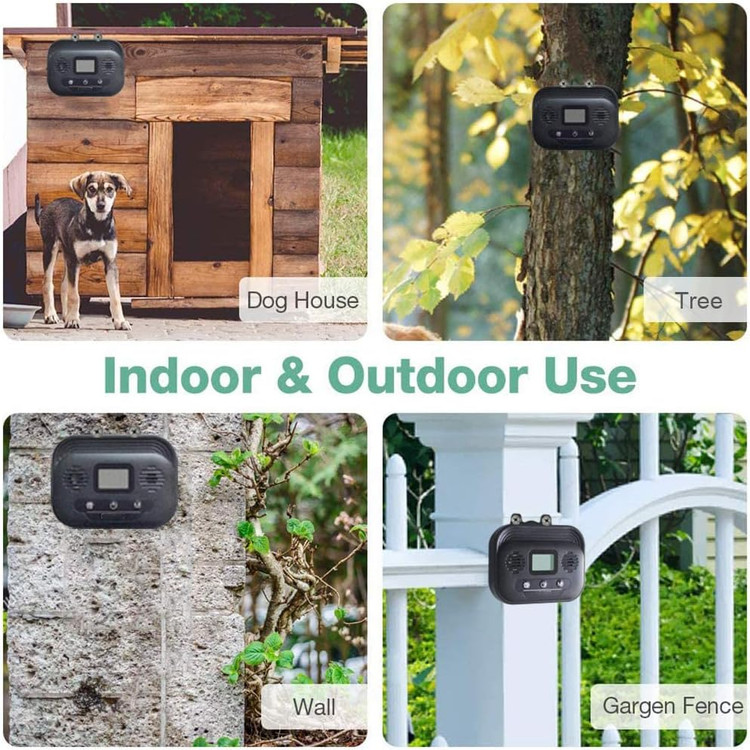 کنترل ضد پارس در فضای باز صدای اولتراسونیک را منتشر می کند. (صدای اولتراسونیک توسط سگ ها شنیده می شود اما برای انسان بی صدا است)