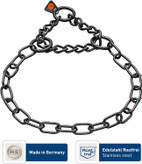 زنجیر لغزنده اصلاحی فولاد ضد زنگ سیاه: قلاده محافظ با زنجیره مونتاژ. یقه های Martingale از دو بخش تشکیل شده اند: یک بخش زنجیره ثابت و یک حلقه کنترل (زنجیره مونتاژ). بند به حلقه O در حلقه کنترل متصل می شود. این قلاده سگ دارای پیوندهای متوسط است و برای سگ های مو کوتاه و بلند مناسب است
