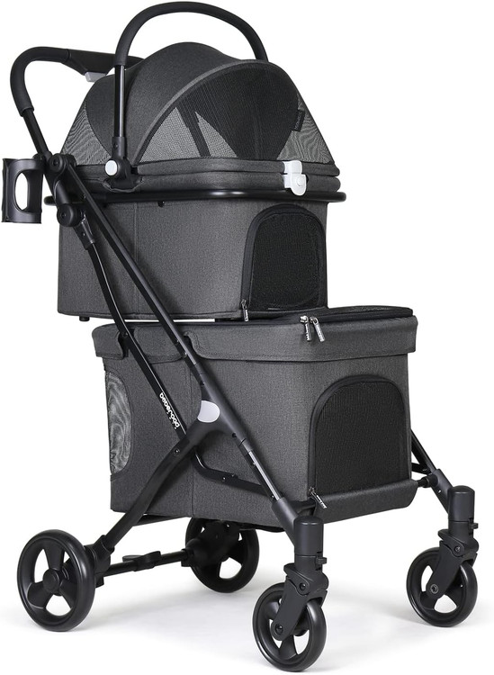کالسکه حیوان خانگی دو نفره Beberoad T1 برای 2 سگ یا گربه کالسکه دو نفره حیوان خانگی تاشو سبک وزن با کریر قابل جدا شدن برای کمپینگ مسافرتی (مشکی)