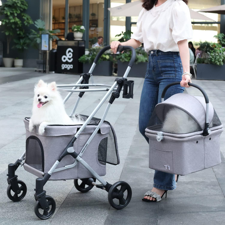طراحی دوطبقه: کالسکه حیوان خانگی دو طبقه Beberoa Pets T1 دارای طراحی خلاقانه دو طبقه است که فضای بیشتر و انعطاف پذیری بیشتری را ارائه می دهد. صاحبان حیوانات خانگی می توانند چندین حیوان خانگی را در لایه های بالا و پایین به طور همزمان حمل کنند یا حیوانات خانگی را در لایه های مختلف جدا کنند تا ایمنی و راحتی آنها تضمین شود.