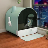 جعبه خاک گربه ضد پاشش از نوع کشو یی ، کاملاً محصور با دستگاه تصفیه بو و بو زدایی، ، جعبه بستر بزرگ، ضد بو و پاشش (سبز)