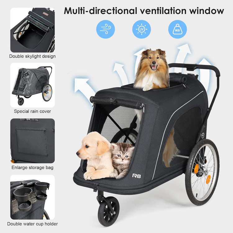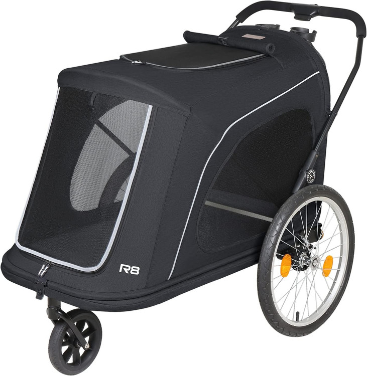 کالسکه حیوانات خانگی تاشو لوکس، کالسکه و تریلر حیوانات خانگی Beberoad R8 برای سگ های بزرگ و غیر قابل جابجایی، سگ های مسن، ناتوان و باردار - قابل حمل راحت با دوچرخه و ماشین (مشکی)
