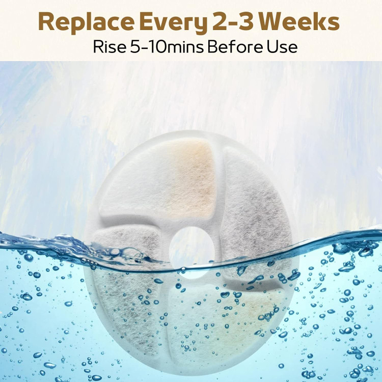 توصیه ها برای استفاده: برای تازه و بهداشتی نگه داشتن آب آشامیدنی، توصیه می شود فیلتر فواره آب گربه را هر 2 تا 3 هفته یکبار تعویض کنید و کارتریج فیلتر را به مدت 5 تا 10 دقیقه قبل از استفاده به طور کامل در آب خیس کنید و آن را با سمت صاف به سمت بالا در داخل آب نصب کنید. جعبه فیلتر