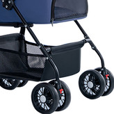 چرخهای جلوی انعطافپذیر را میتوان به راحتی در پیادهروهای شلوغ و پارکهای شلوغ جابهجا کرد و استفاده از نیرو را در هل دادن این چرخ دستی کالسکه حیوان خانگی تاشو کاهش داد.