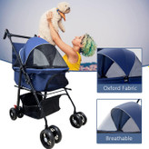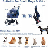 کالسکه حیوان خانگی Gluckluz کالسکه مسافرتی تاشو گربه و سگ با چرخ جلو 360 درجه و سبد نگهداری و مش تنفس برای بچه گربه توله سگ کوچک متوسط بزرگ (آبی)