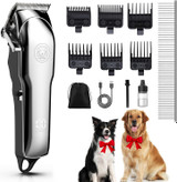 ماشین اصلاح سگ و گربه ، کیت نظافت سگ کاملا شارژی، حرفه ای برای پوشش های ضخیم/موی سنگین، موتور قوی 7000 دور در دقیقه تیغه فلزی تیز LED صفحه نمایش برقی اصلاح کننده پت ریش تراش برای سگ ها، گربه ها و حیوانات