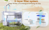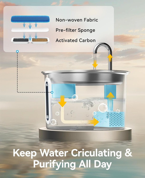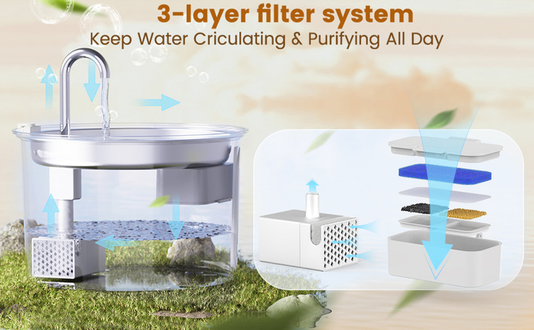 【سیستم فیلتراسیون عالی】 آبخوریهای گربه oneisall با ۳ فیلتر کربن فعال جایگزین، هر قطره آب تمام ناخالصیها را حذف میکند و آبی غنی از اکسیژن و با طعم بهتر فراهم میکند و تضمین میکند که آب گربه شما همیشه خالص و تازه باشد.