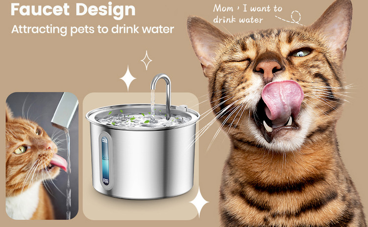 【فواره گربه استیل ضد زنگ 304】 در مقایسه با مواد پلاستیکی، فواره گربه oneisall ساخته شده از فلز استیل ضد زنگ، محکمتر، سالمتر و با طول عمر بیشتر، سلامت و ایمنی حیوان خانگی را تضمین میکند.